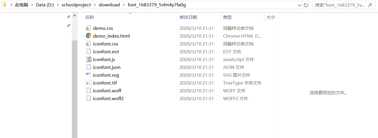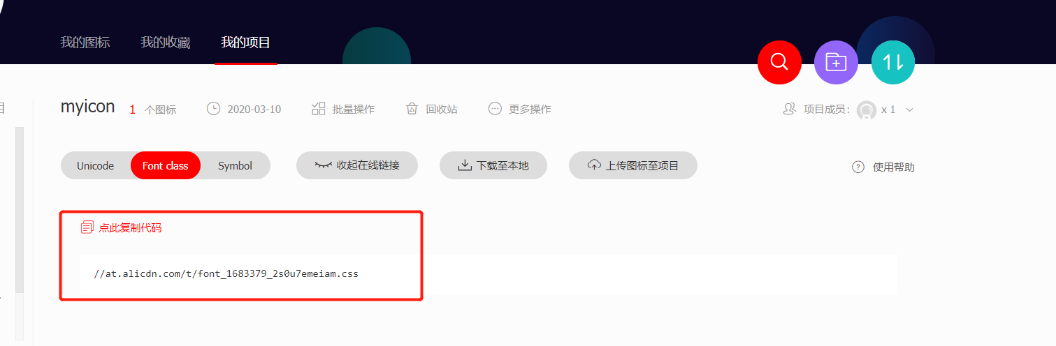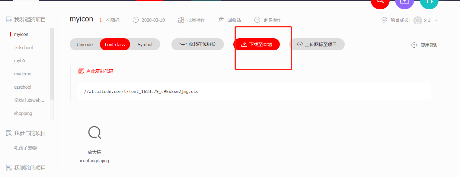 2.将字体文件下载到本地,在页面中引用文件中的iconfont.css文件