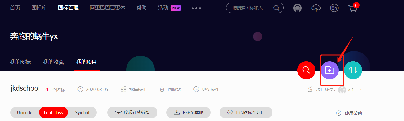 点击如下按钮,新建一个项目用于存放自己常用的图标