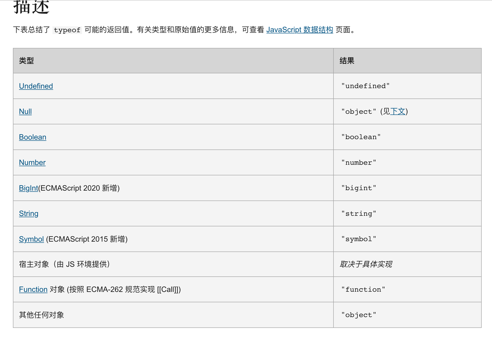 根据typeof的介绍也能了解到typeof的返回值