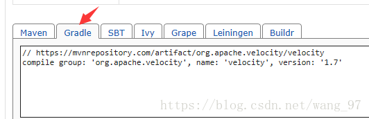这里以上面的velocity包为例:compile “group值:包名:$+包名+Version(跟gradle.properties中一样)”