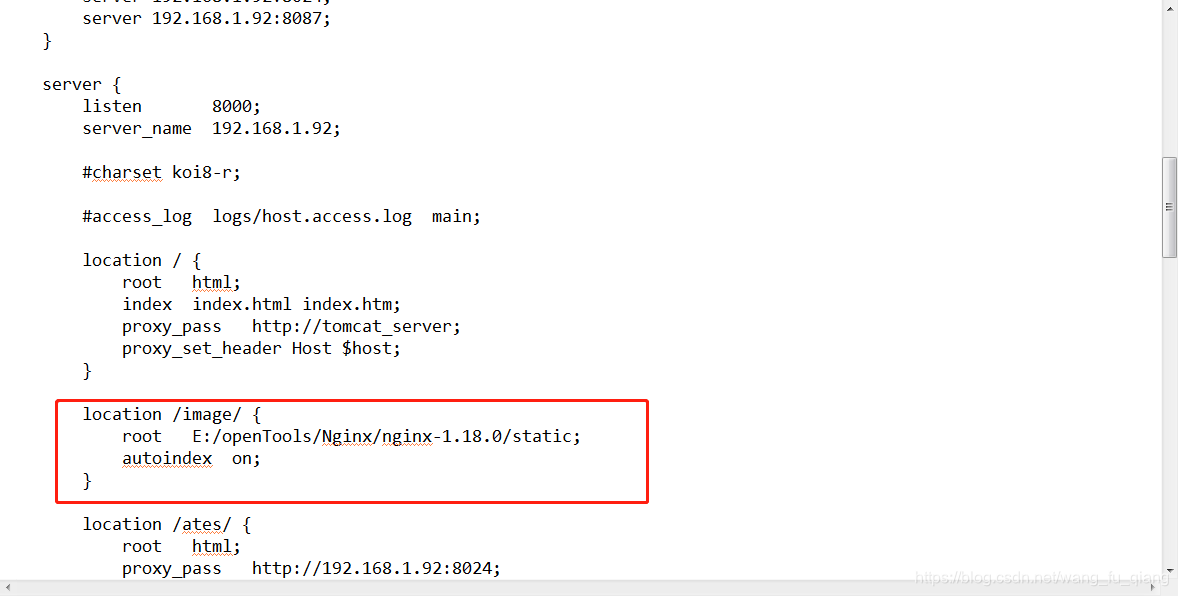 解压目录下找到conf/nginx.conf,打开文件如下(重点是红色框框的部分):