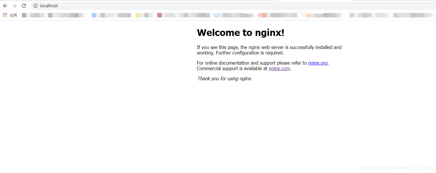打开浏览器访问 localhost:80,出现如下页面就说明Nginx成功运行了