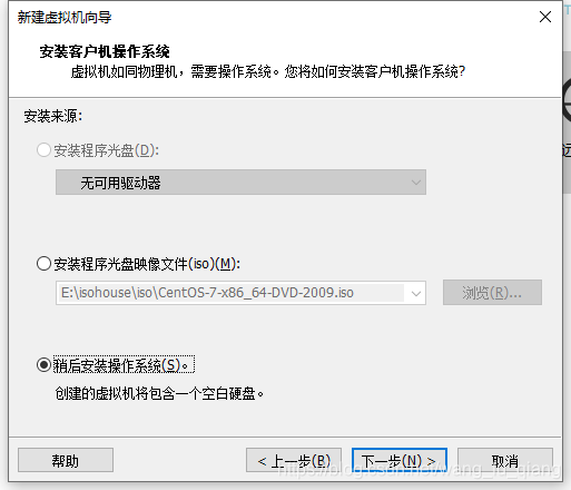 3.选择稍后安装操作系统,下一步