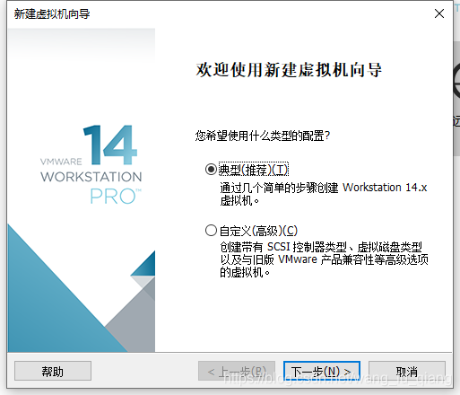 2、下载完成之后启动VMWare,点击新建虚拟机,使用典型(推荐)的安装,下一步