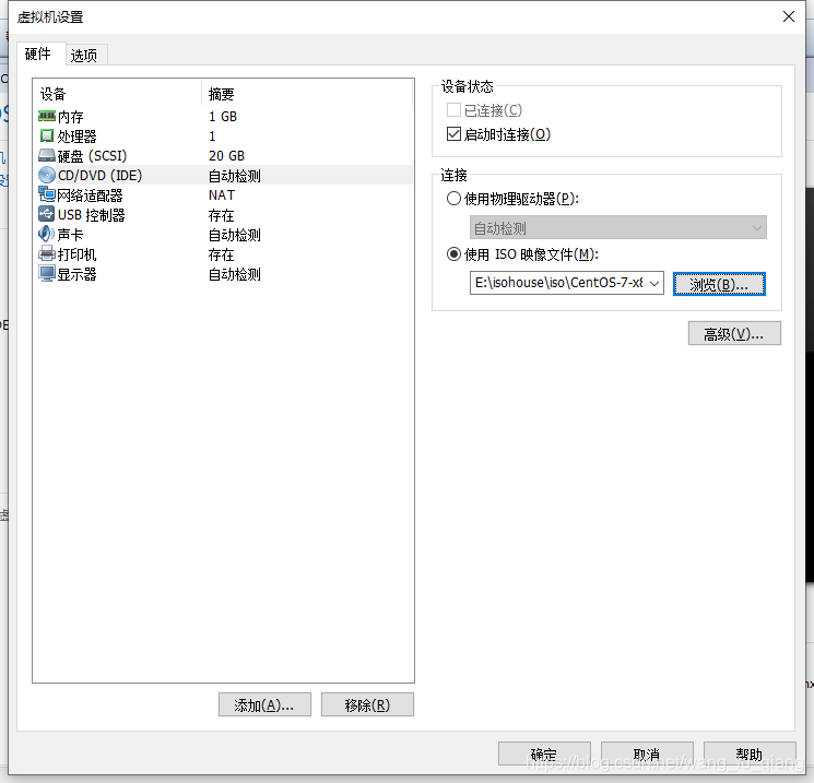 8、编辑此虚拟机,设置iso映像地址,点击确定