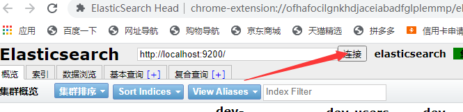 18.进入管理页面,输入 默认的 http://localhost:9200/ 点连接,我的已经安装