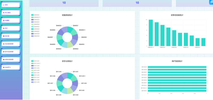 数据分析:管理员可通过“数据分析”模块查看用户活跃度、播放量、评论数量等指标,了解平台运行状况,并用于制定运营策略。