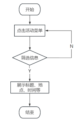 系统根据条件筛选出相关活动,并以卡片形式展示,包含标题、地点和时间等信息。