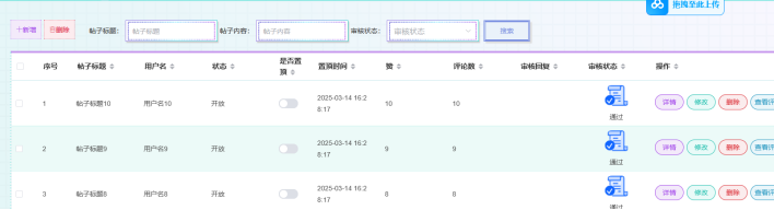 这些功能设计注重后台的高效管理,确保平台内容的安全性和规范性,同时也能提供管理员获取数据支持,优化平台运营决策能力。