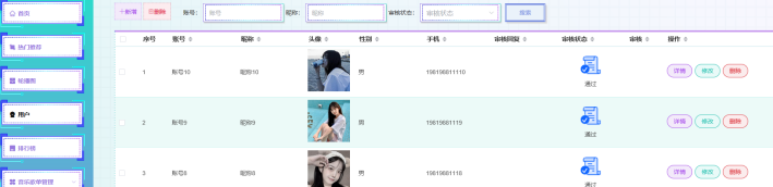 用户管理:管理员可以在“用户管理”模块中查看所有用户信息,包括账号状态(如封号)、注册时间、登录记录等。可通过搜索框输入关键词或条件筛选特定用户,并对用户进行批量操作(如审核、警告、注销)。