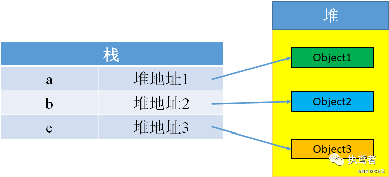 存储需要内存的栈区和堆区,其中栈区保存变量标识符和指向内存中该对象的指针;