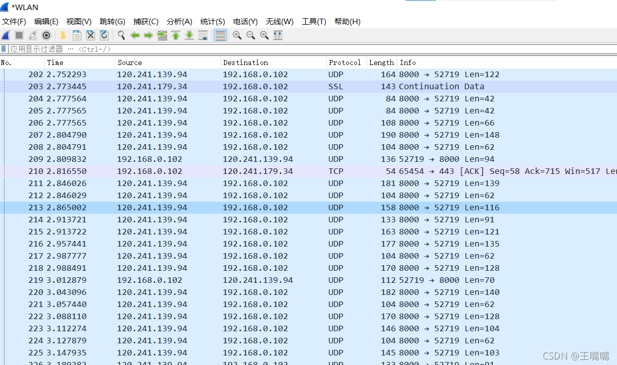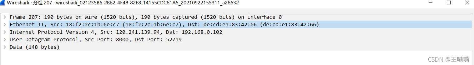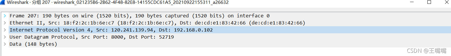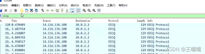再来看wireshark抓包的界面