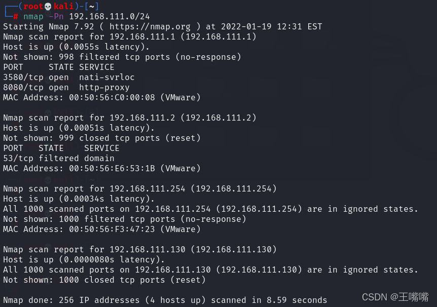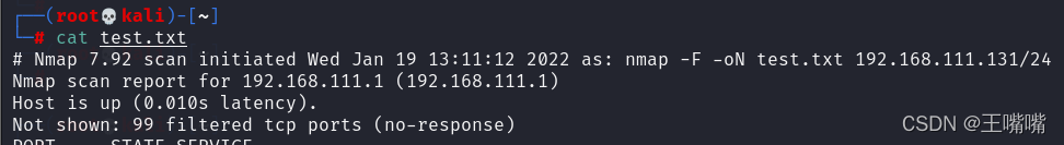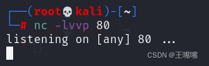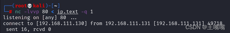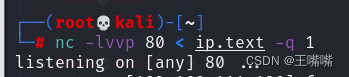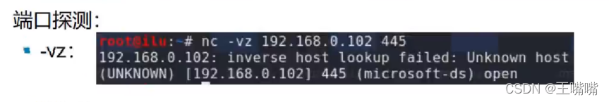 -z 零输入输出,只扫端口 可以指定范围,例如80-8080kali 输入ip:正向