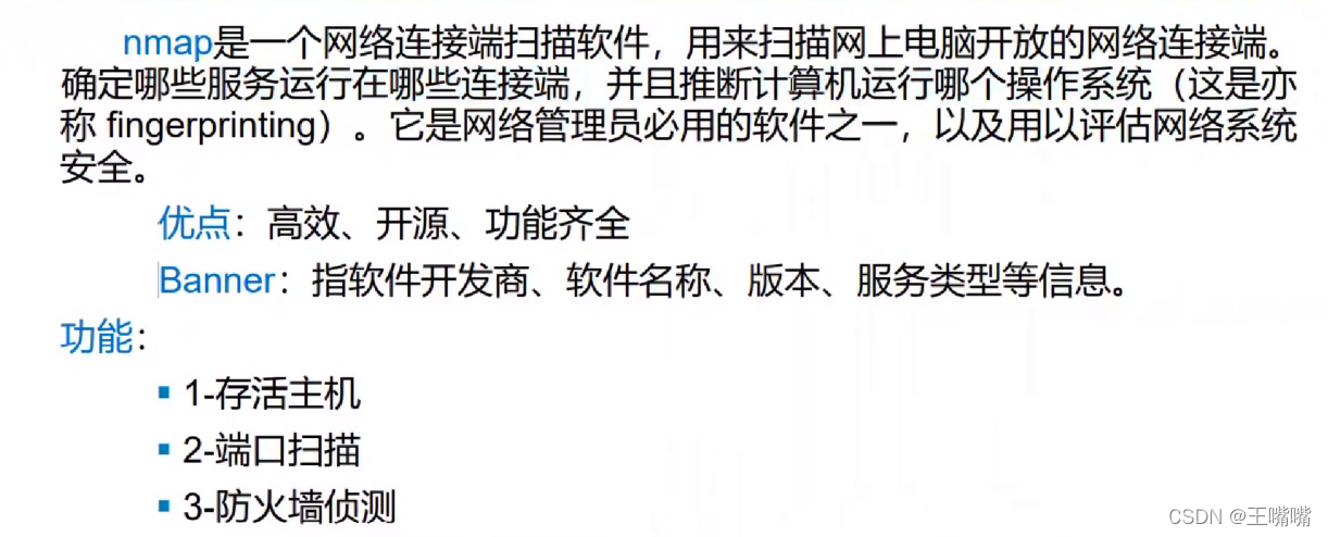 -sS:tcp syn扫描 扫端口(常用,最好用,速度快,隐蔽性好,第三次握手没实现)
