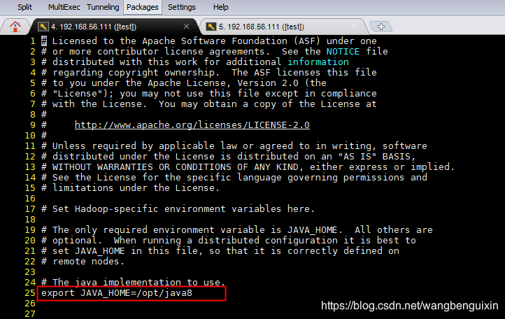 切换至/opt/hadoop/etc/hadoop:cd /opt/soft/hadoop/etc/hadoop