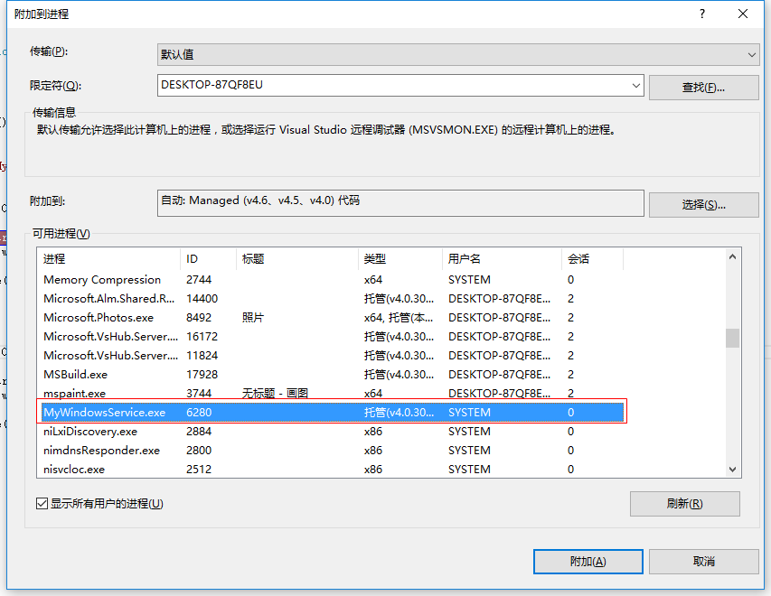 必须首先启动服务,然后将一个调试器附加到正在运行的服务的进程中。