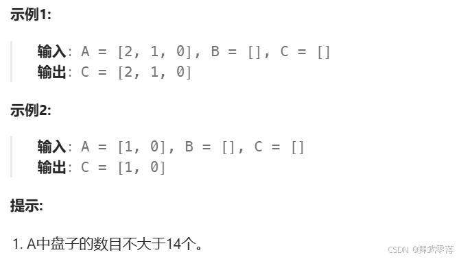 void hanota(vector<int>& A, vector<int>& B, vector<int>& C) {