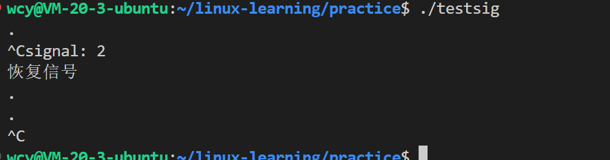 - SIGQUIT信号未产生,一旦产生SIGQUIT信号将被阻塞,它的处理动作是用户自定义函数sighandler。
