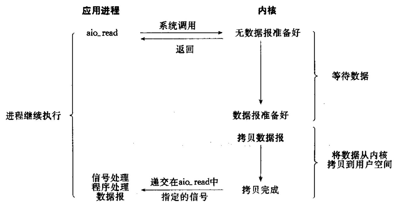 异步 IO:应用程序发起 I/O 操作后立即返回,继续执行其他任务。由内核在数据拷贝完成时,通知应用程序(信号驱动是告诉应用程序何时可以开始拷贝数据)。