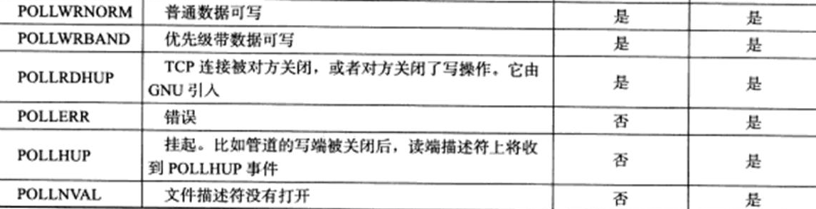EPOLLHUP:FD 被挂断(如对端关闭,无需主动注册)。