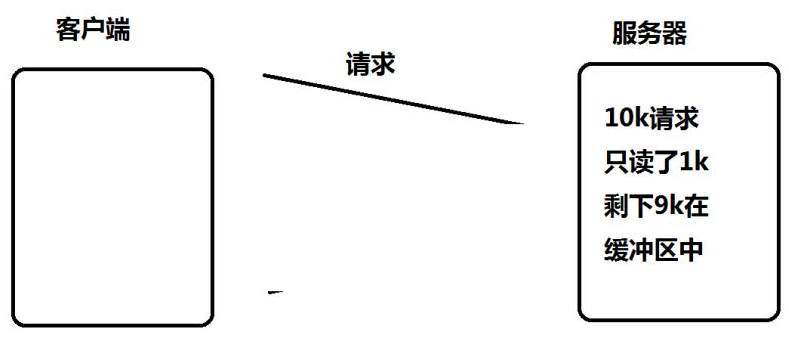 如果服务端写的代码是阻塞式的 read,并且一次只 read 1k 数据的话(read 不能保证一次就把所有的数据都读出来,参考 man 手册的说明,可能被信号打断),剩下的 9k 数据就会待在缓冲区中
