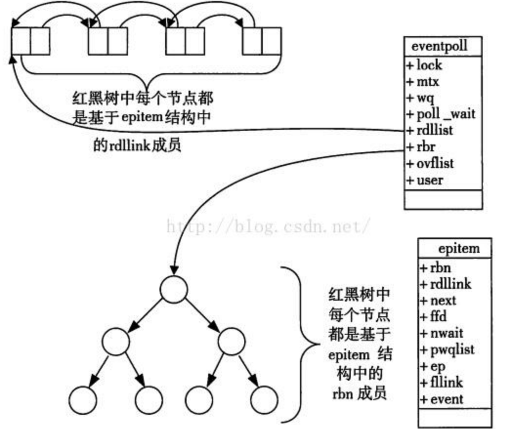 - 每一个 epoll 对象都有一个独立的 eventpoll 结构体,用于存放通过 epoll_ctl 方法向 epoll 对象中添加进来的事件。