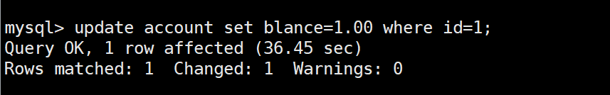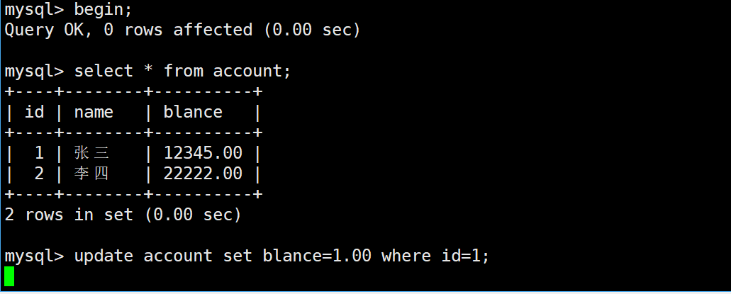 mysql> select * from account; --再次查看,看到最新的更新数据