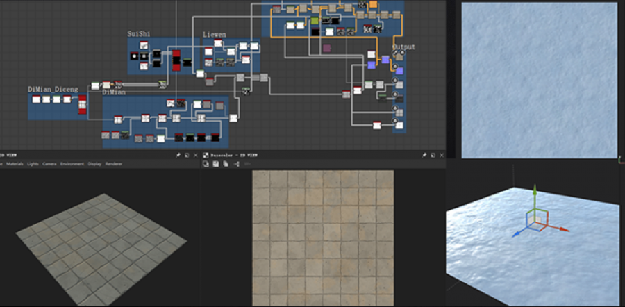同时在Substance Designer中制作地表材质,整合进场景内。
