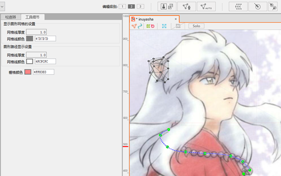 关于角色的衣着需要有不同的绑定思路,例如犬夜叉比较宽大的衣袍所体现的飘动感和蓬松感,就需要和现代人较普遍收身的服装区别开来,以及脖子上的串珠,依原图并不是纯坠在胸前,而是略有飘动感(形态如路径所示),需要在动态上有所体现。