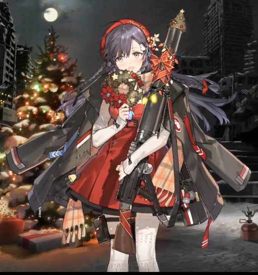 可以看出这是节日特征的立绘类型,制作时可以考虑表现在枪炮上的彩灯效果,以及在圣诞冬日时寒冷的气温下让角色在说话时呼出热气的表现都会与立绘的氛围颇为贴合。