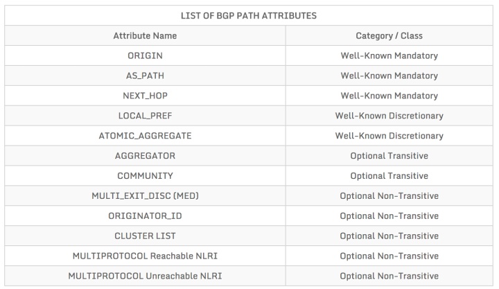 - Well-known Mandatory: 所有的BGP router必须识别这个属性,并且所有的BGP Message必须包含这个属性