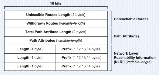 首先,BGP节点间传递的BGP message就是由NLRI(Network Layer Reachability Information)和PA组成。这个可以从BGP Update Message看出来。如果只考虑IP路由,那么NLRI就是IP prefix。