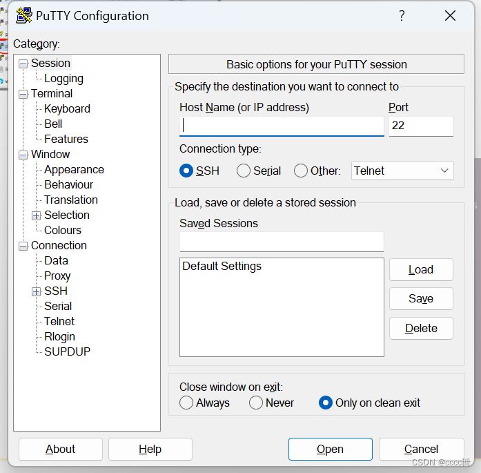 linux通过ipconfig获取地址填入‘Host Name(or IP address)’中