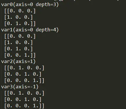 var3 = tf.one_hot(indices=[1, 2, 3], depth=4, axis=-1)