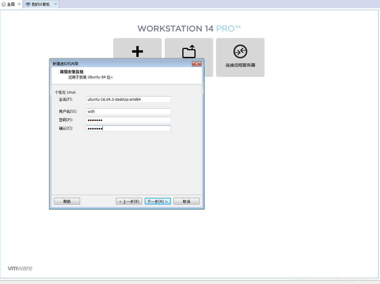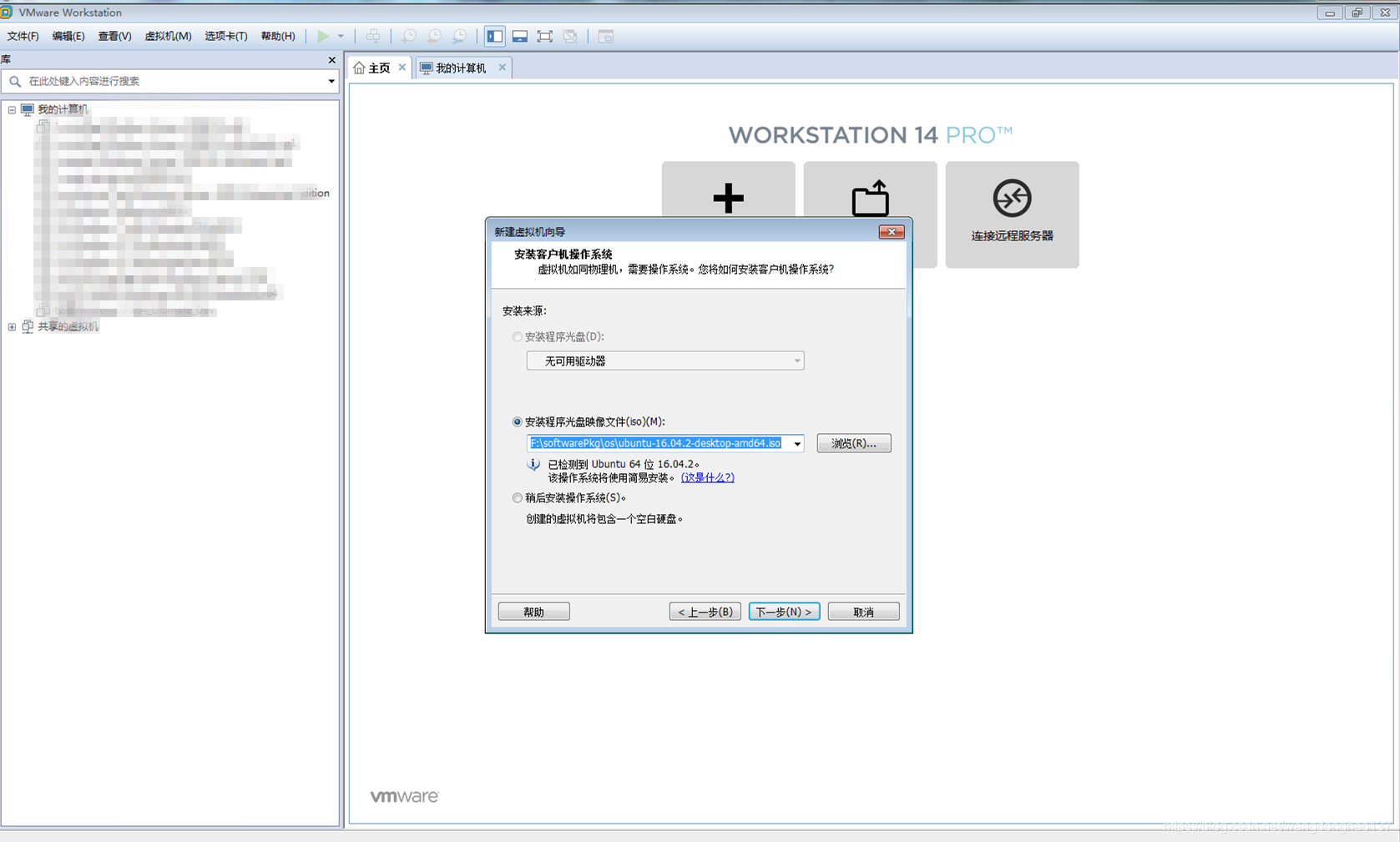 - VMware14中新建虚拟机,安装来源选择“安装程序光盘镜像文件-【选择你的ubuntu-16.04.2-desktop-amd64.iso】”
