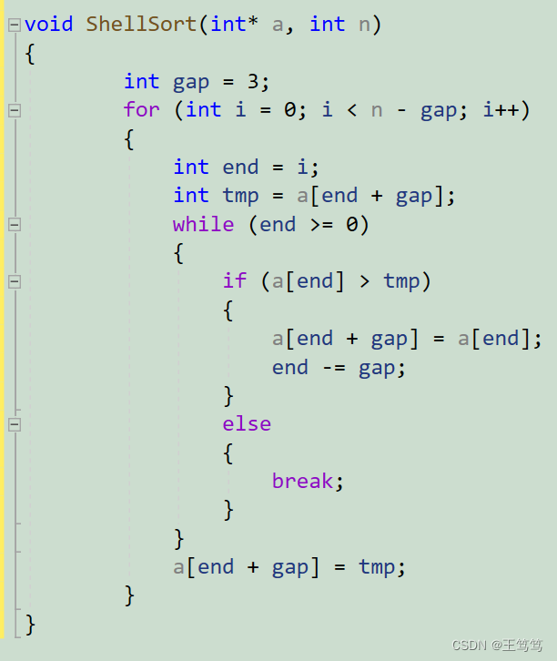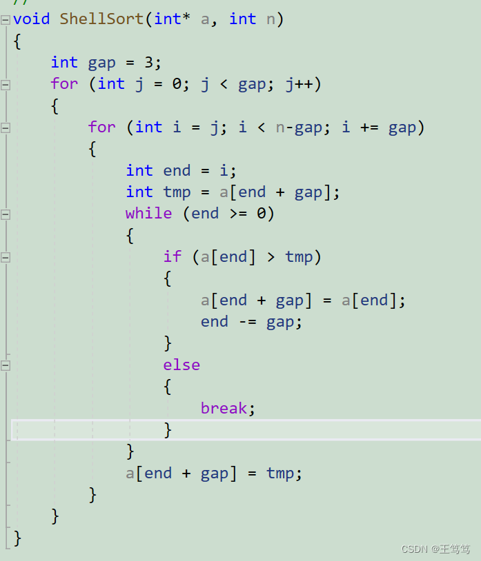 for (int i = j; i < n; i += gap)//每组数据排序(升序)