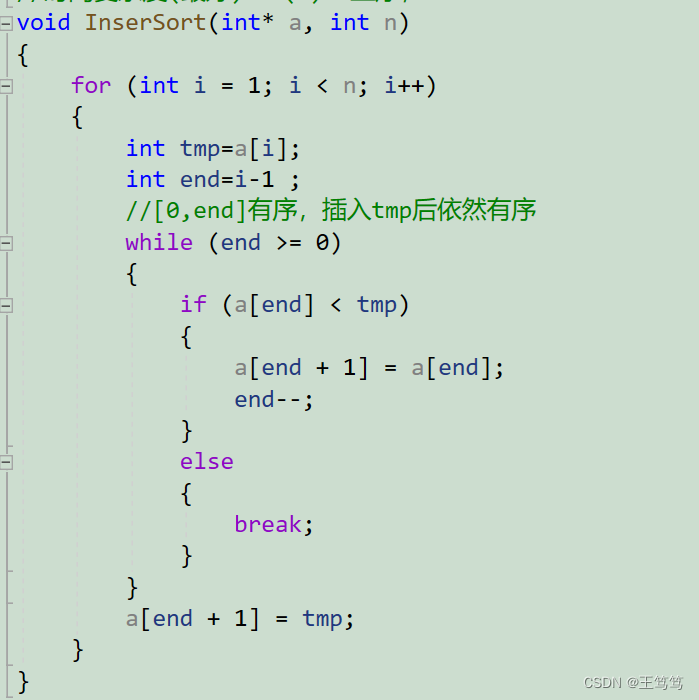 以上代码中tmp可以理解为我们插入的数据,大致意思就是当我们想要插入的数比最后一个数小的时候,就放在最后一个数的前面,并且将数组中的数字整体向后移动;但是当其他情况的时就可以直接插入。