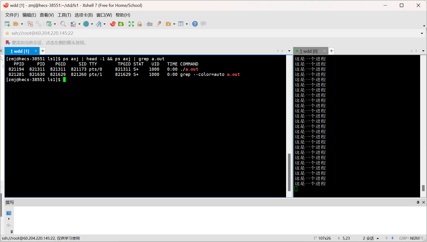 下面我们将右边的进程,也就是循环打印终止,再输入查进程的命令