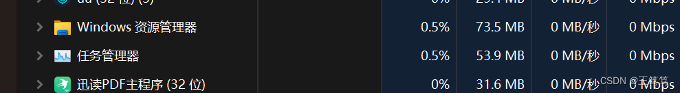 我们先从最简单的部分开始理解,在我们平时写完代码时,将代码运行起来时会在我们的磁盘上生成.exe文件,同时生成窗口,我们可以随便运行一些程序再打开我们的任务管理器,就可以看到这些进程的信息