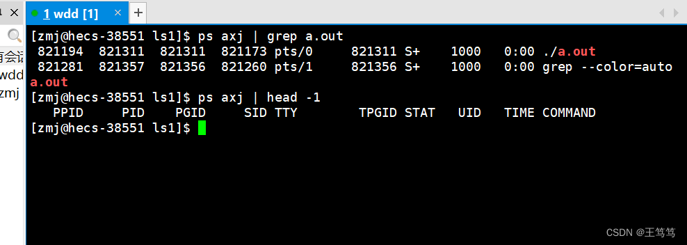 那在下面PID为821630的进程又是什么呢?其实当我们使用指令查进程时,查进程本身的动作也会变成进程,我要去追你,我自己也要动起来,所以在查进程时会将自己也查出来。