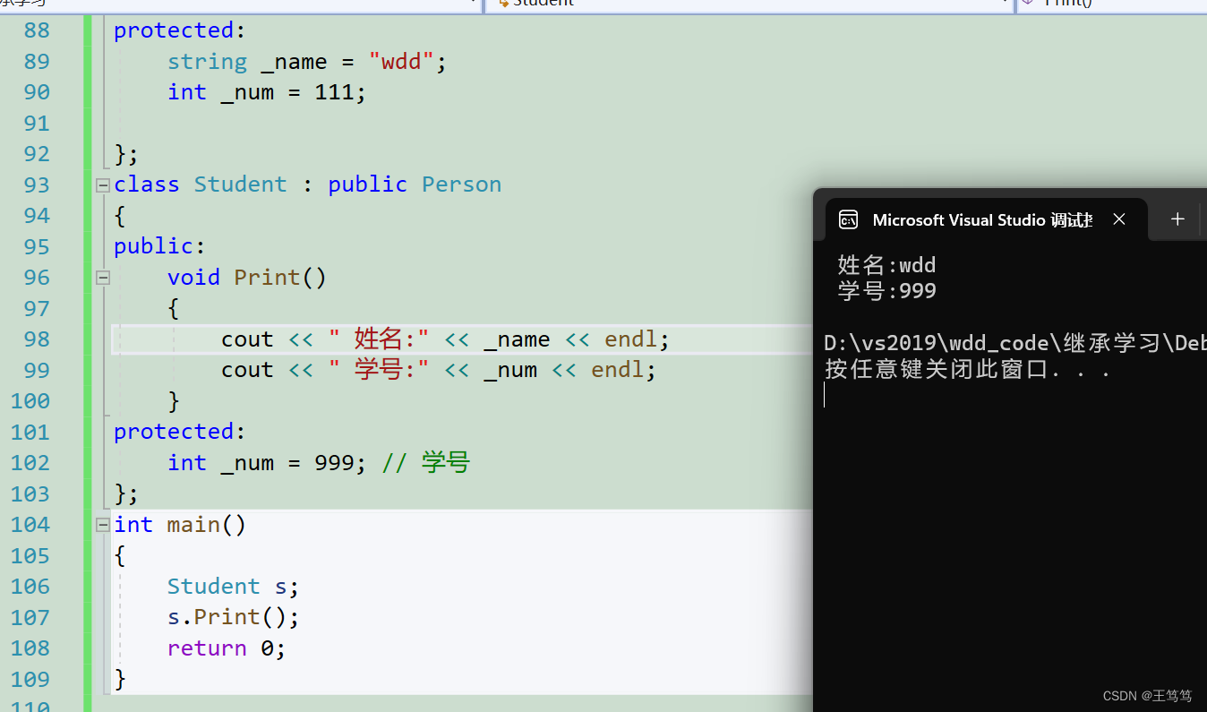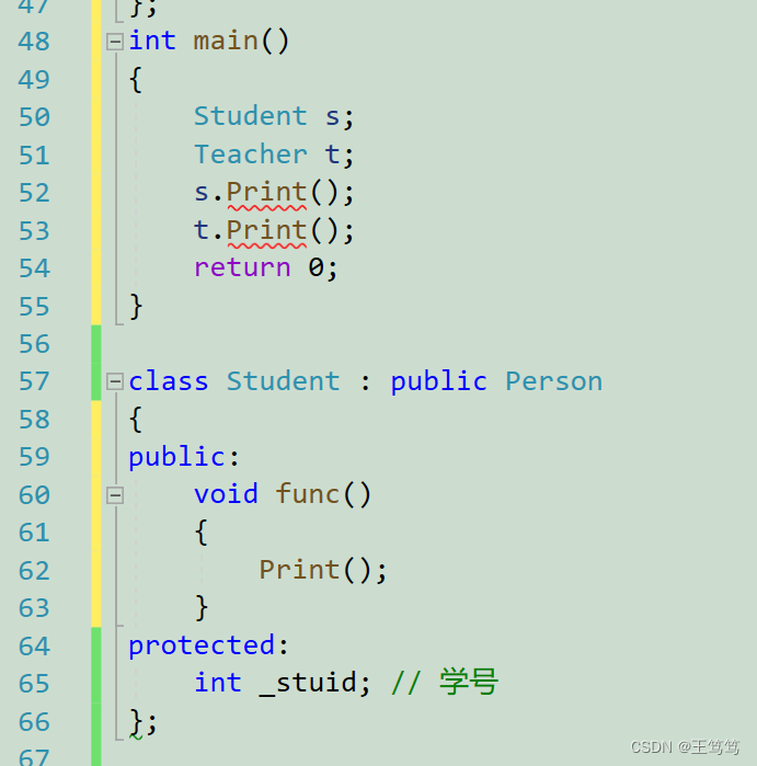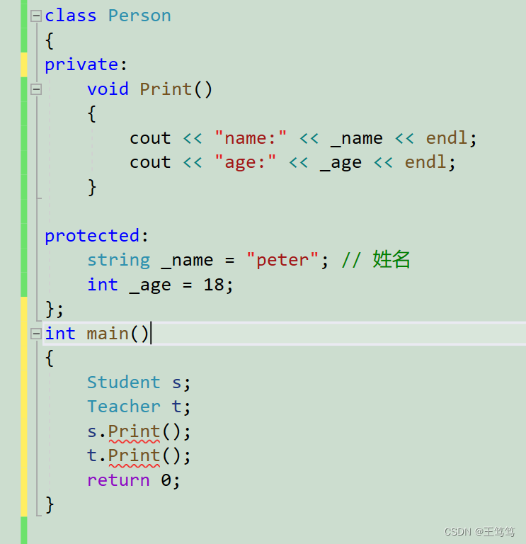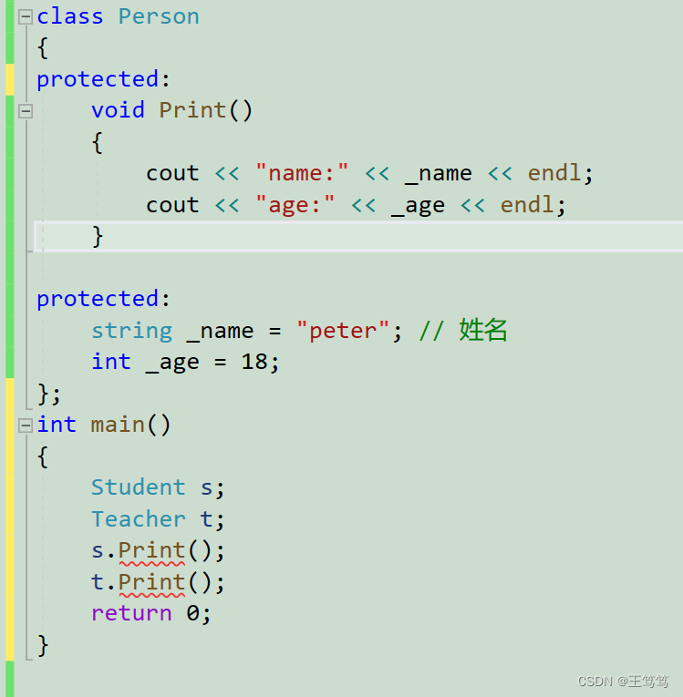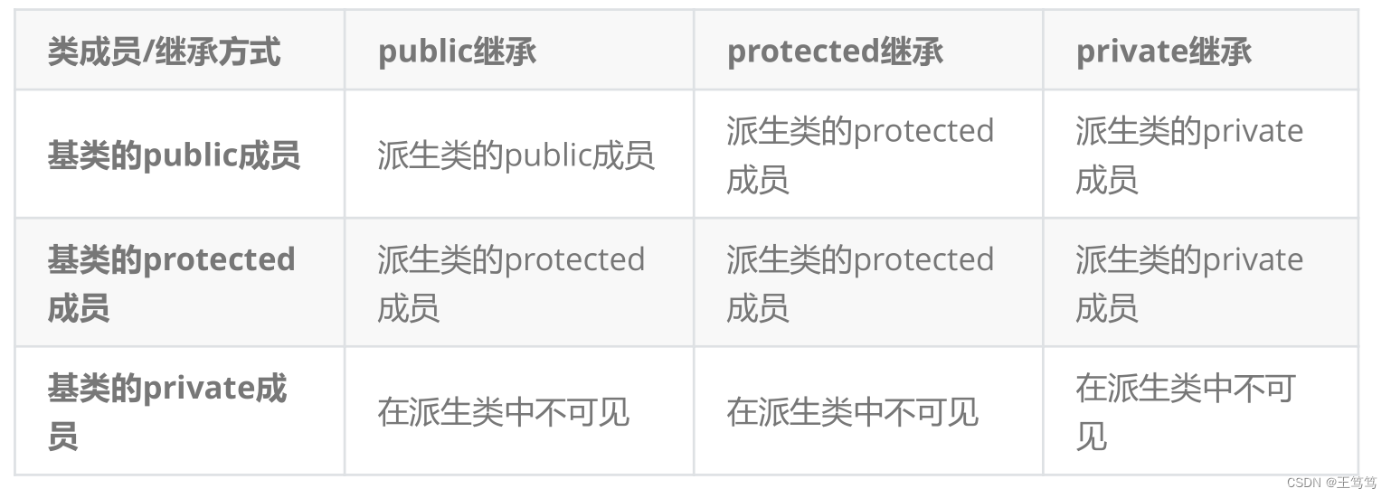 在上面的代码中呢我们会看到一些关键字,比如protected,并且会有疑问那继承方式只能是public吗,接下来我们回到继承的定义