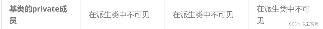 这个表来表示父类的成员在子类中又怎样的访问关系。