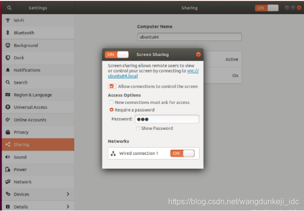 首先,需要将Ubuntu的设置->Sharing项修改为下图状态: