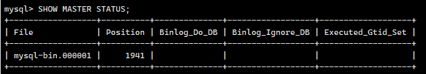 File和Position 的值,后续配置从库会用到:SHOW MASTER STATUS;