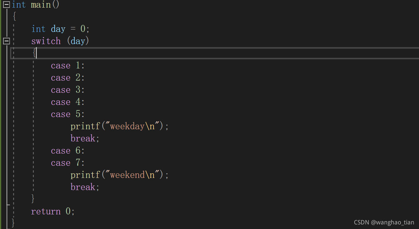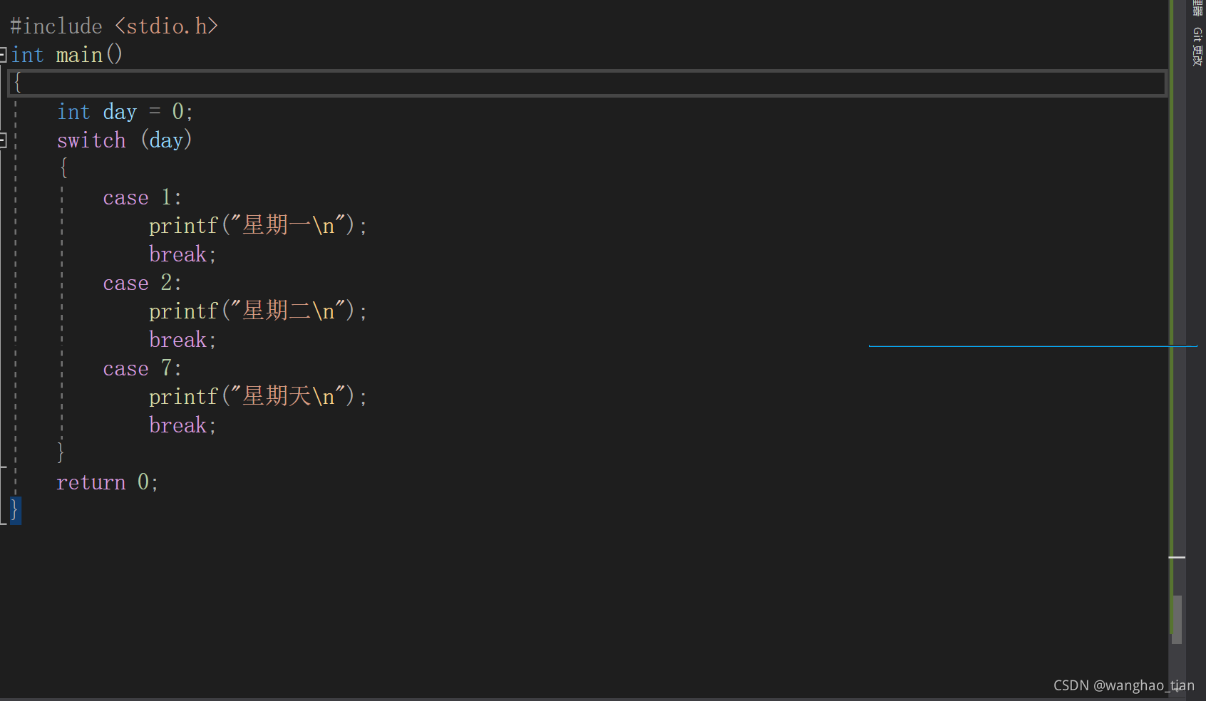 2.break是实现分支的真正要义之所在(switch的入口是case,出口是break;break的作用是直接跳出
