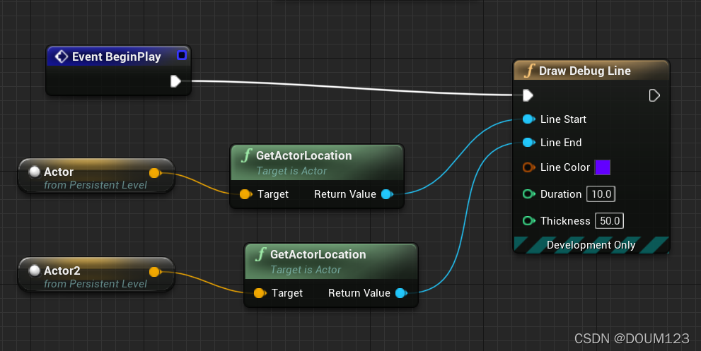 本文介绍了在Unreal Engine 4(UE4)中使用蓝图进行射线检测时如何画点和画线。通过创建空物体并获取其位置,结合Draw Debug Point和Draw Debug Line节点,设置坐标、大小、颜色和持续时间等参数,实现动态绘制调试辅助点和线,以辅助游戏引擎的开发和调试。