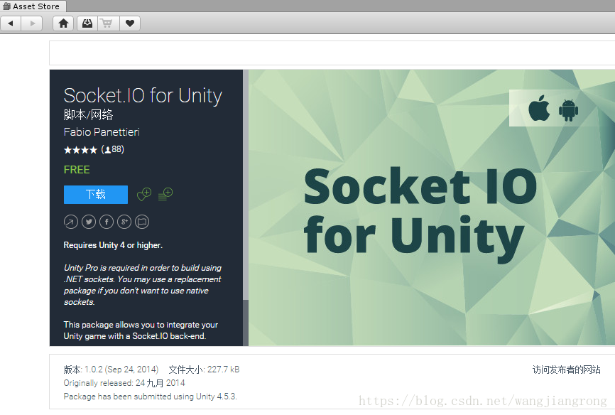 本文用的第三方插件为Socket.IO,在unity的asset store中大家可以自行去下载