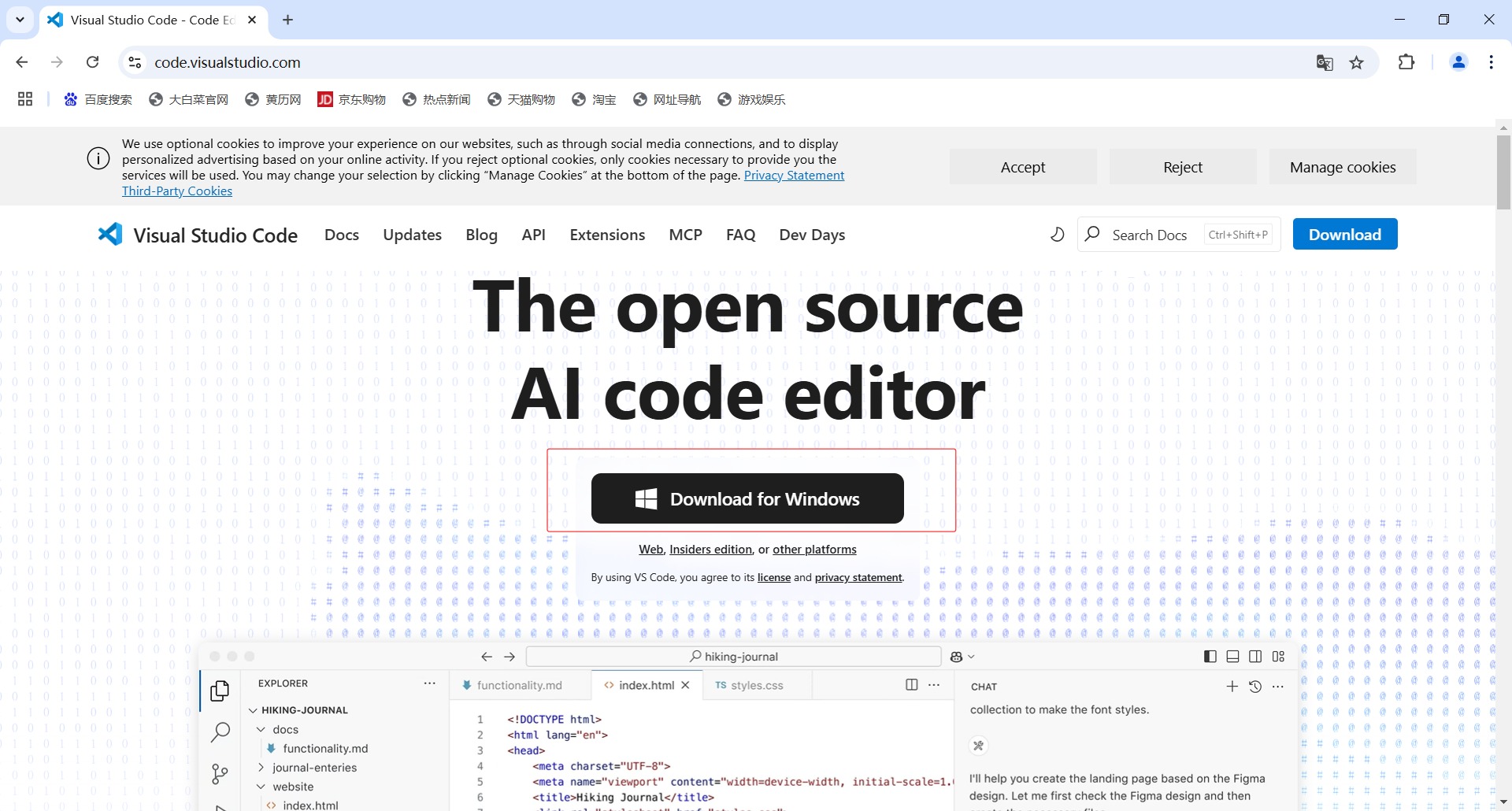 1.进入官网后,点击主页上的【Download for windows】即可下载