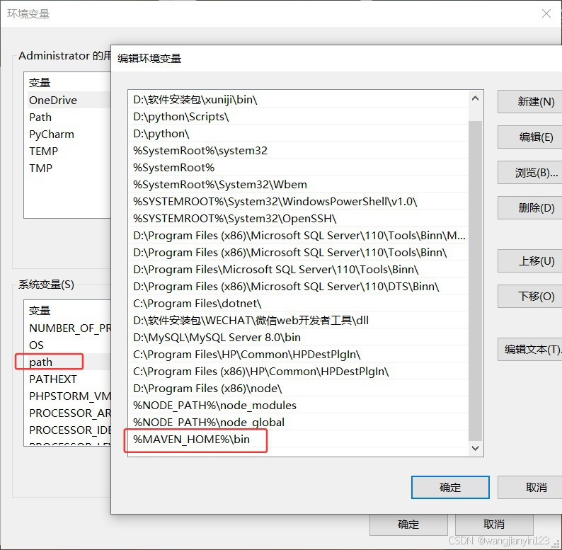 (3)环境里面添加maven路径,并配置在path中;